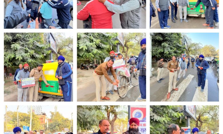 एस एच ओ महावीर जी के द्वारा ऑटो चालकों को अपनी निर्धारित ड्रेस (यूनिफॉर्म) पहनने, ऑटो में आगे एवं पीछे लगी सभी लाइटों, ब्रेक लाइट, इंडिकेटर एवं रिफ्लेक्टर को विशेष रूप से रात्रि के समय सही स्थिति में रखने के निर्देश दिए गए आज ऑटो ई रिक्शा साइकिल स्कूटी बाइक एवं अन्य गाड़ियों पर रिफ्लेक्टर टेप भी लगाए गए एस एच ओ सुनील कुमार एस जी एम नगर थाना एवं एस एच ओ महावीर एन आई टी 5 पुलिस थाना एवं जेड ओ ए एस आई इंद्रजीत के साथ-साथ ट्रैफिक की टीम एवं रोड सेफ्टी ओमनी फाउंडेशन से महेश कथूरिया प्रदीप माला, नरेंद्र सैनी, राजीव ग्रोवर, जसवीर एवं संजय, मनीष भाटिया मौके पर मौजूद थे स्टेट रोड सेफ्टी काउंसिल के सदस्य सरदार देवेंद्र सिंह भी मौके पर मौजूद थे