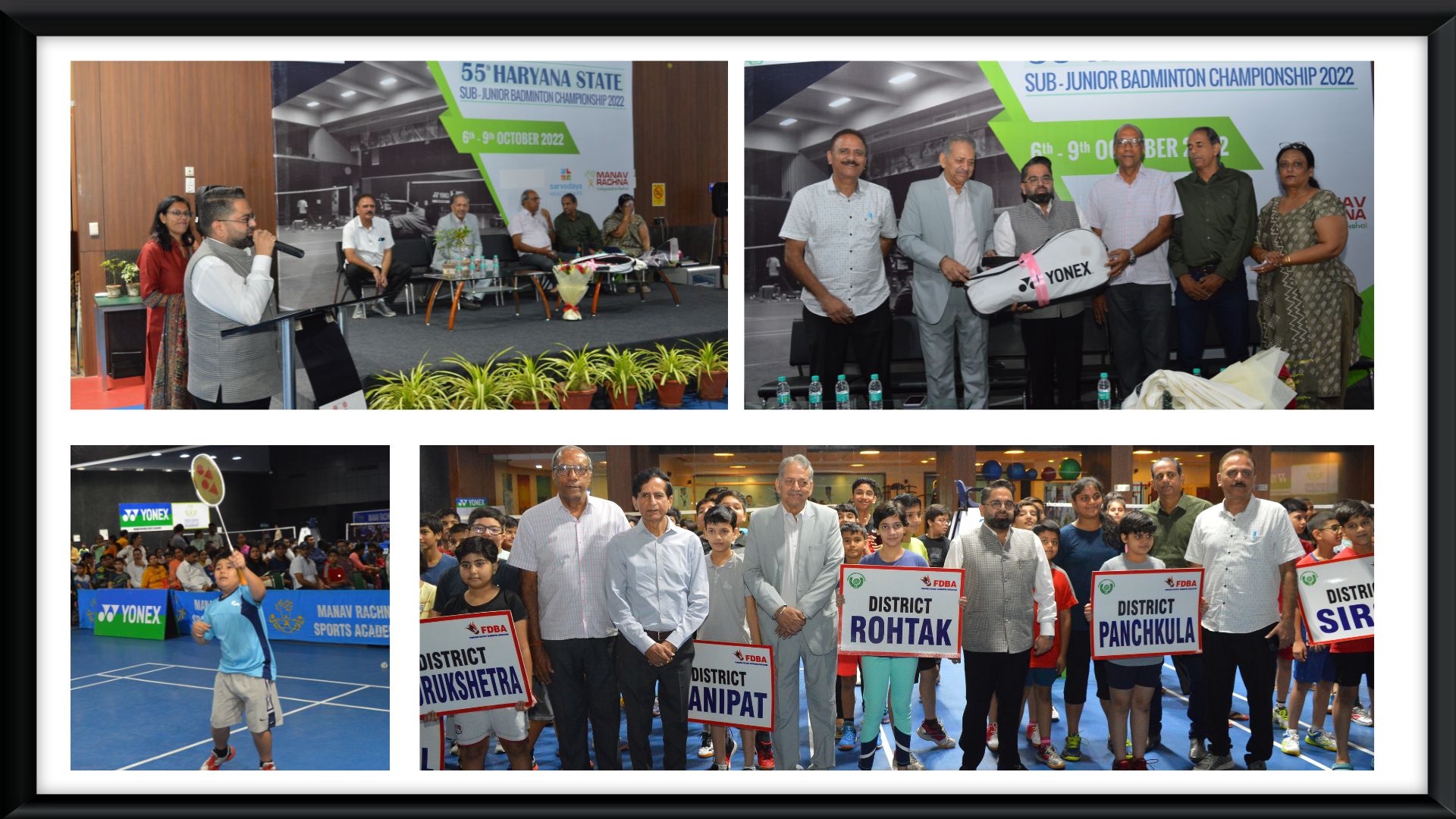 मानव रचना स्पोर्ट्स एकेडमी, सेक्टर 14, फरीदाबाद में डॉ. ओ पी भल्ला 55वीं हरियाणा स्टेट सब-जूनियर बैडमिंटन चैंपियनशिप 2022 की मेज़बानी कर रहा है