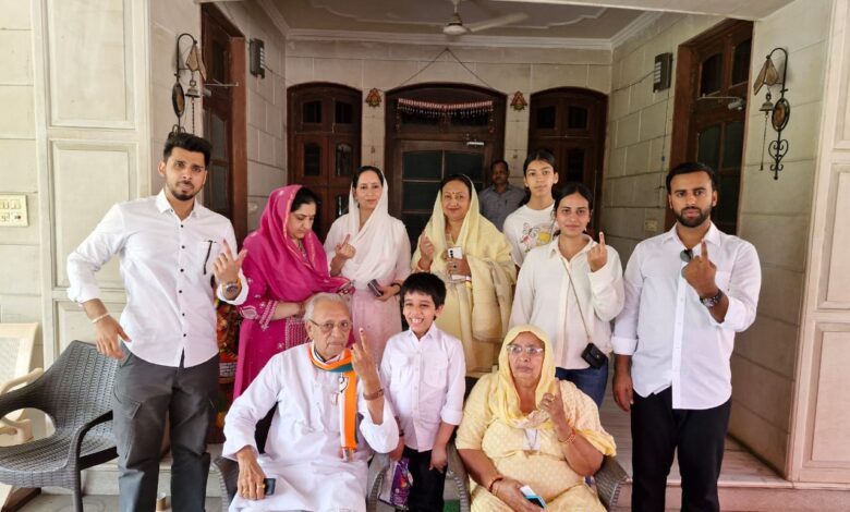 कांग्रेस प्रत्याशी चौधरी महेंद्र प्रताप सिंह ने परिवार के साथ किया मतदान