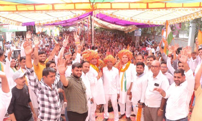 उमड़े जनसैलाब का हाथ जोड़ कर आभार प्रकट करते कांग्रेस प्रत्याशी विजय प्रताप
