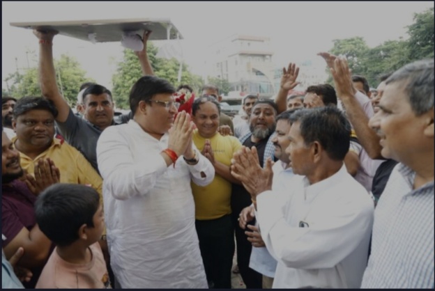 आज सुबह से ही विपुल गोयल के अपने कार्यालय सेक्टर 16 पर बधाई देने वालो का ताँता लगा रहा और लोग सुबह से ही कार्यालय पर जुटने शुरू हों गए। इस दौरान विपुल गोयल का कार्यकर्ताओं ने फूल मालाओं, बुक्के और पगड़ी बांधकर मान-सम्मान किया। जिस पर विपुल गोयल ने सभी का आभार जताते हुए कहा की इस पगड़ी का मान सम्मान वो हमेशा रखेगे। विपुल गोयल ने फरीदाबाद की विभिन्न संस्थाओं के पदाधिकारियों व कार्यकर्ताओं द्वारा दी गयी बधाईयों के लिए सभी का आभार जताया। इस मौके पर उद्योगपतियों के अलावा सामाजिक संस्थाएं भी शामिल रही।