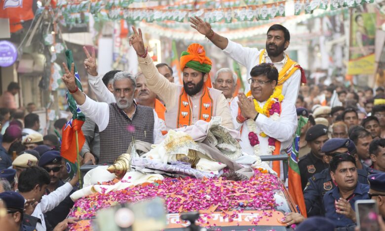 नायब सिंह सैनी पहुंचे विपुल के रोड शो में, की वोट की अपील