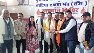 गुरुद्वारा वजीरस्तान में आयोजित रक्तदान कैंप के शिवर भारत अशोक अरोड़ा को किया गया सम्मानित