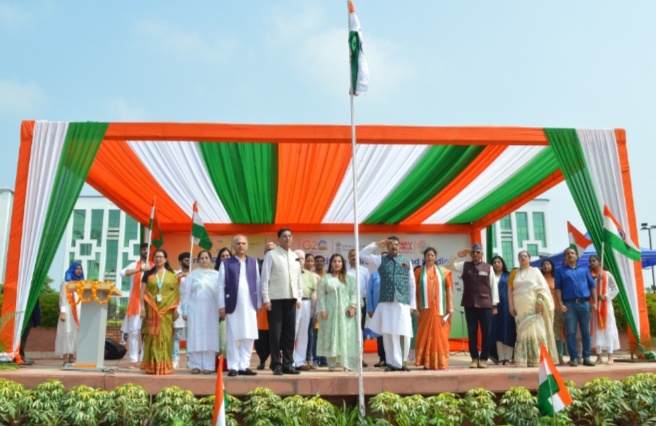 फरीदाबाद, 15 अगस्त, 2023: मानव रचना में मंगलवार को भारत का 77 वां स्वतंत्रता दिवस उत्साह के साथ मनाया गया। परिसर के सेंट्रल लॉन में आयोजित कार्यक्रम में एमआरआईआईआरएस उप कुलपति डॉ. संजय श्रीवास्तव, डायरेक्टर जनरल एमआरआईआईआरएस लेफ्टिनेंट जनरल डॉ. आरके आनंद और एमआरआईआईआरएस अलुमनाई रिलेशन ऑफिस हैड और इंटरनेशनल अफेयर्स सान्या भल्ला ने मिलकर ध्वजारोहण किया। इस दौरान शिक्षकों सहित कर्मचारी और छात्र भी उपस्थिति रहे।