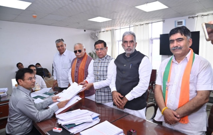 राजेश नागर का नामांकन कराने पहुंचे केंद्रीय मंत्री मनोहर लाल एवं कृष्णपाल